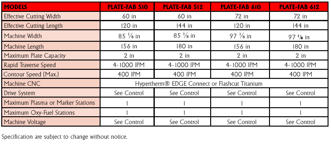 - CNC Controller choices: Hypertherm Edge Connect or Flashcut Titanium.
