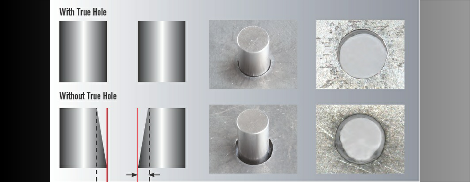 - TrueHole™ Technology founded by Hypertherm® produces a significantly better hole quality than what has been previously possible before using plasma. This technology was developed for mild steel from gauge to 1″(25 mm) and has been optimized from a 1:1 to a 2:1 diameter to thickness ratio.