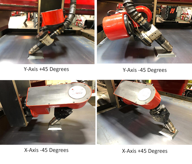 Koike also offers Initial height sensing that helps position the torch to the correct pierce height off the plate; this will allow for maximum performance and help increase consumable life. The real time arc voltage height control keeps the torch in proper position and helps maintain proper angle and part size even while cutting on an angle. The concealed A/B axis motor and encoder cables helps keep machine operating smoothly by minimizing damage. The high gear ratio helps make quick and precise positioning needed for great bevel cutting. The 3D-X Fully contoured bevel head offers fully automatic beveling in a simplified design.