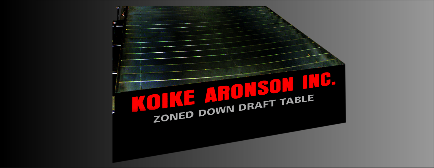 - Koike Zoned Downdraft Cutting Table: The Koike Downdraft table is as big, or as small, as most workpieces you’ve got. Its modular design lets you add space as you need it, with a maximum material thickness of 6 in. Operation is simple: there are no electronic components, and slat frames and slag pans remove easily for cleaning. Fume extraction is everything you need, thanks to multiple zones for optimal fume extraction. Downdraft tables are used primarily for plasma cutting and combined with fume extraction units that filter the air back to the factory. Downdraft tables provide the best option for high-quality cutting with high-density plasma systems.