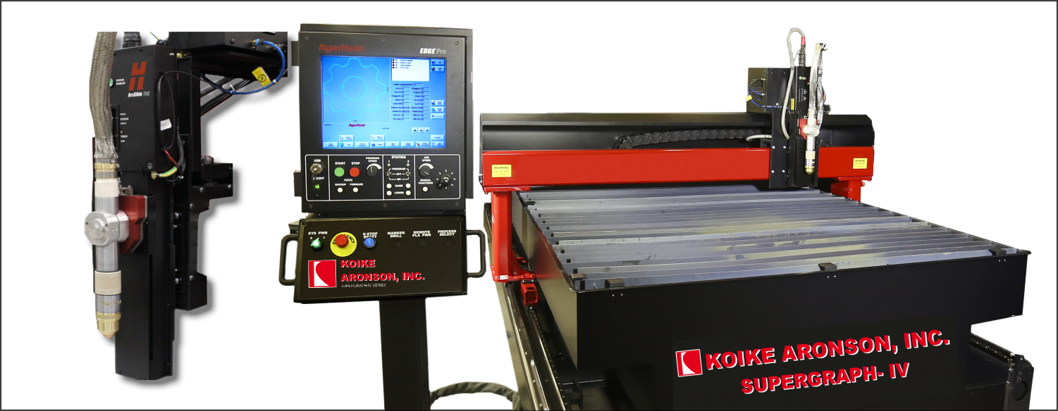 The Supergraph IV cutting system will boost your shop’s productivity and consistency, while reducing material waste by as much as 30%. With a traverse speed of up to 1000 inches per minute, you have the ability to maximize production without the loss of floor space. The compact design of the Supergraph IV also enables it to be easily moved and set up at a different location. This is truly a high powered, compact KOIKE cnc plasma cutting machine.